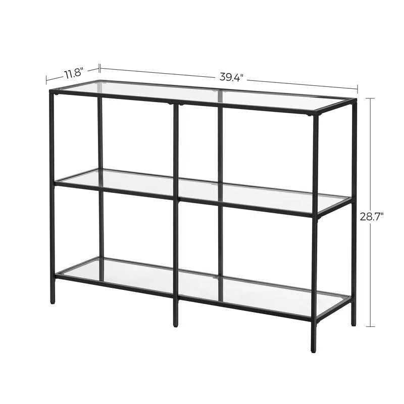 This console table is built for utility and design, featuring an on-trend wood-look top with a 40 lb. weight capacity. Its thoroughly modern blackened bronze frame features diagonal center support that adds stability and visual interest. Its narrow profile makes this a perfect choice for compact spaces where you need that extra bit of storage.
