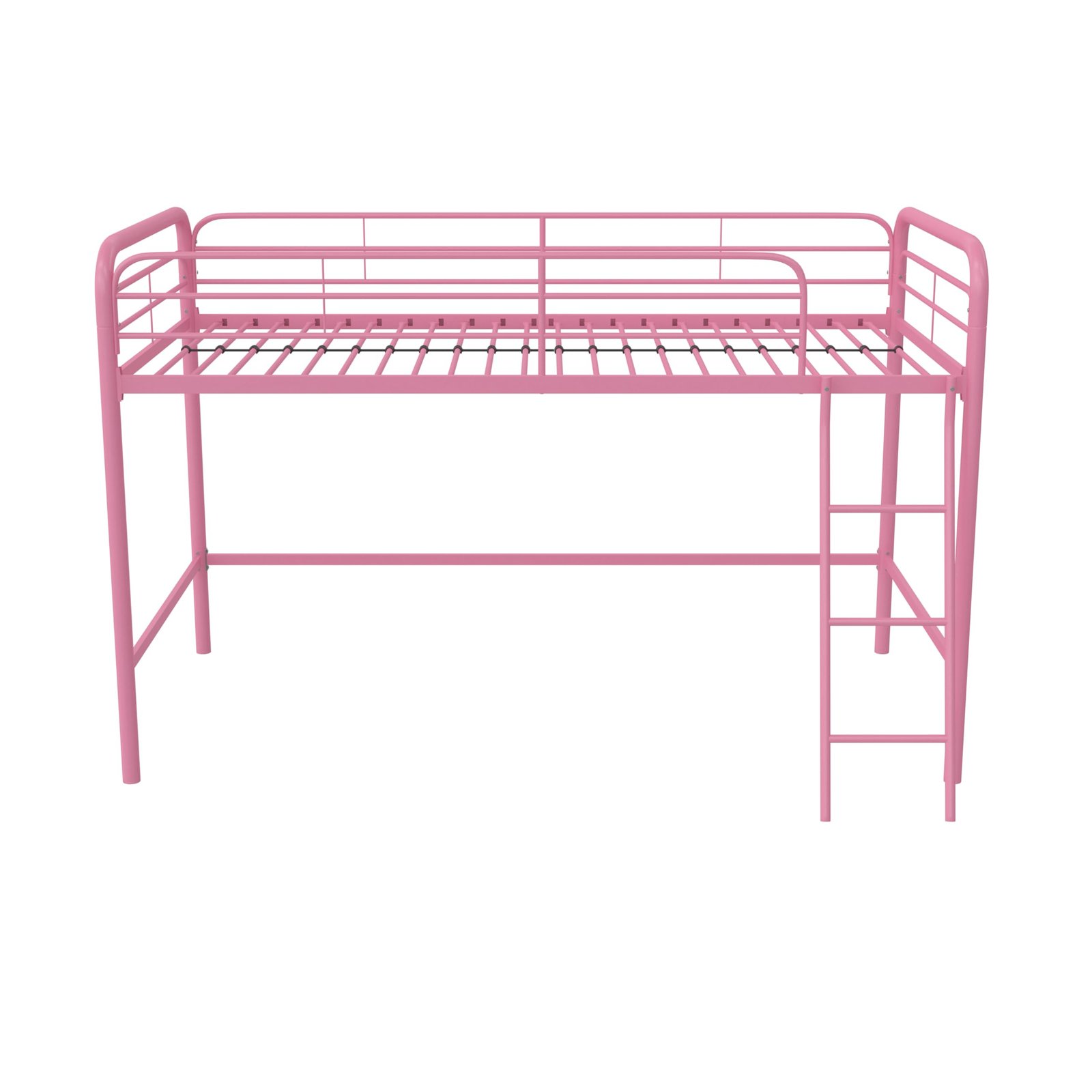 - Your purchase includes One DHP Junior Loft Bed Frame With Ladder in Pink color | Ladder is installed on the left side and can’t be switched