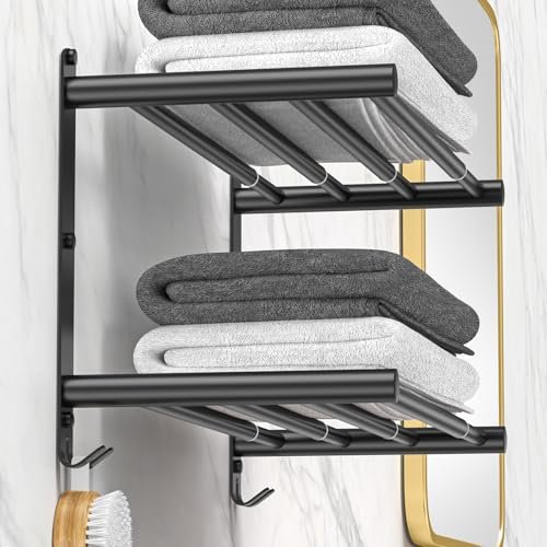 Bath Towel Holders for Toilet Kitchen Double Towel Hanger (Black Double Towel Rack)