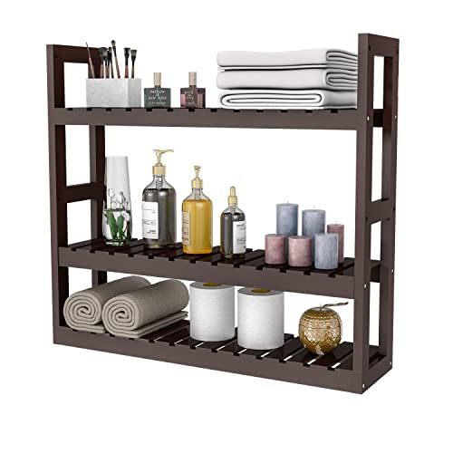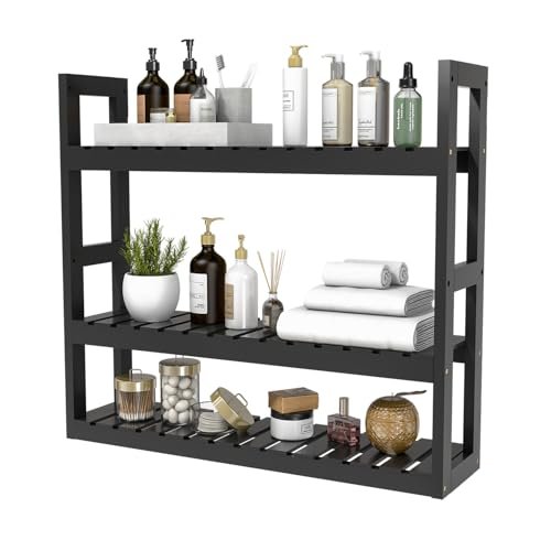Bathroom Shelf 3-Tier Wall Mount Storage Rack Multifunctional Adjustable Layer Free Standing Over Toilet Utility Shelves Living Room Kitchen (Black)